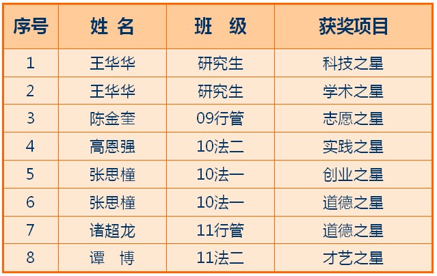 所带领七彩虹环保实践队荣获2011年校优秀实践队;