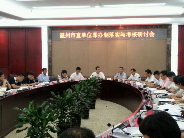 2012年9月25日下午,温州市直单位即办制落实与考核研讨会在我校岩松堂白鹿厅召开。本次会议由温州大学地方政府绩效管理研究中心主办,温州市直机关工委承办。