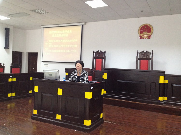 5月21日上午,法政麻将胡了试玩 召开2012届毕业生教育大会暨就业政策说明会。校就业处副处长周冀、院党总支副书记严玲红、学生科科长杨振海、院教学秘书陈华娟、辅导员林丽丽及全体毕业生参加了会议。会议由杨振海老师主持。