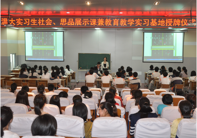 2012年5月10日,法政麻将胡了试玩 09政本在实习学校永嘉县黄田中学,成功开展实习汇报公开课的展示活动。法政麻将胡了试玩 领导蔡克骄书记,政教系主任吴玉宗、副主任吴志敏、学生科科长杨振海、院友陈克老师、温一中特级教师陈作棉、黄田中学校长金成武及其他领导和思品社会学科任课老师观摩并指导了本次公开课。