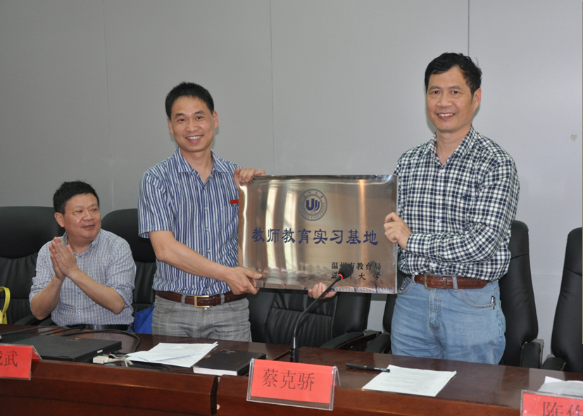 在公开课结束后,蔡克骄书记和所有的听课领导和老师认真地对本次公开课进行评课,各老师对课堂的亮点和优点一一进行点评,并指出了实习同学在上课过程中出现的错误和不足。之后,进行了温州大学教育实习基地的签约和授牌仪式,黄田中学成为温州大学法政麻将胡了试玩 又一教育实习基地。