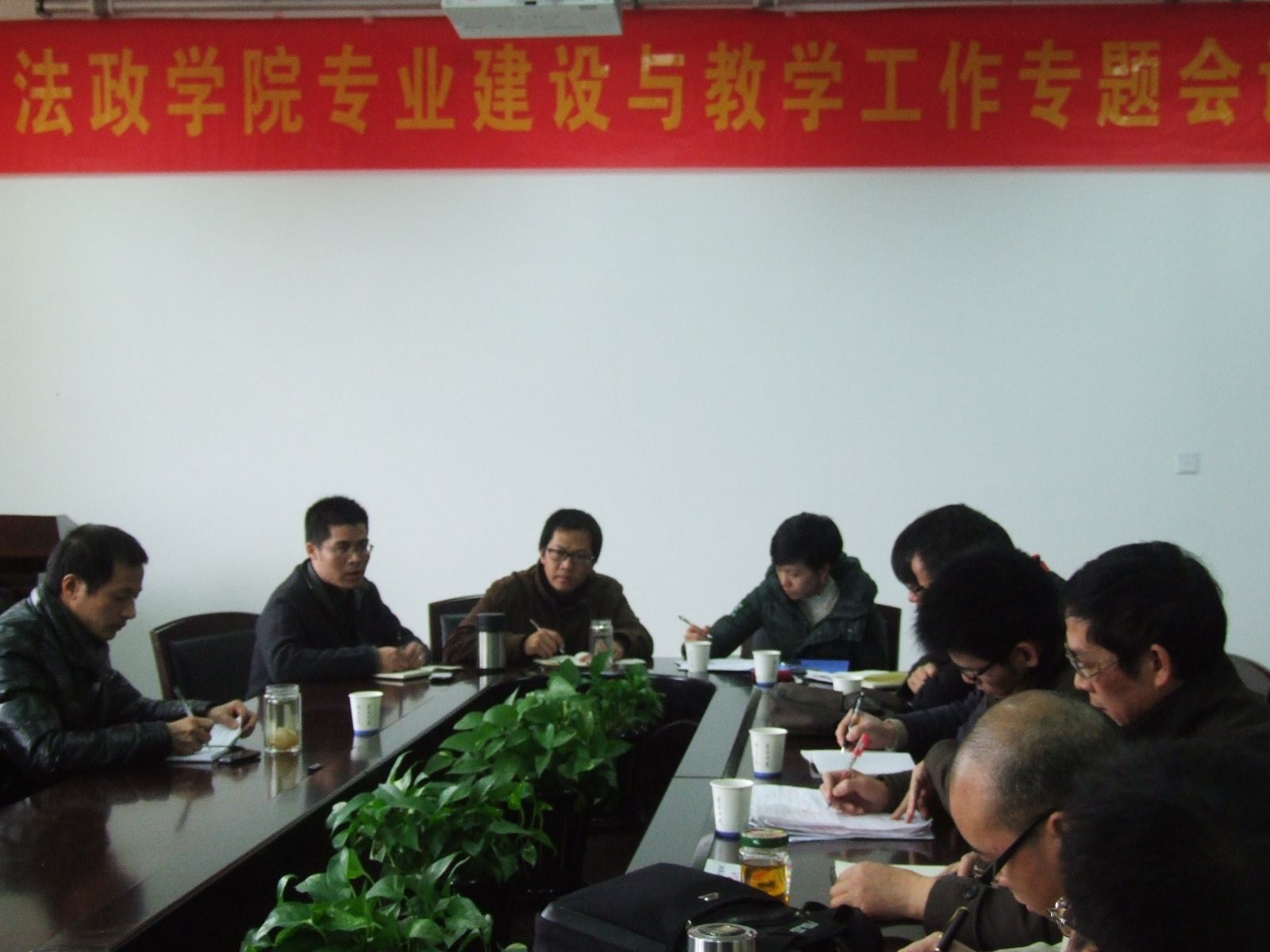 2011年12月22日下午,在法政楼307会议室召开了法政麻将胡了试玩 专业建设专题会议,参加会议的有全体班子成员、科室负责人、各系主任和教师代表,并邀请学校教学督导彭参教授前来指导,会议由院长方益权教授主持。