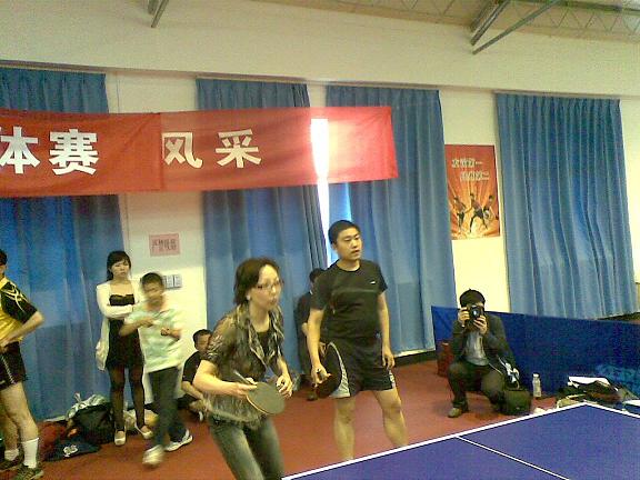 首先对阵的是音乐队,吴志敏老师以男单身份第一个出场,没有太多悬念,轻松战胜对手。接下来的王新老师也顺利挑落对方女单。在混双失利之后,蔡克骄和李斌老师搭档男双,经过艰苦奋战,最终击败对手,从而以大分3:1战胜音乐队。在无可奈何地输给物电后,碰上了被音乐击败的机电队。本以为可以轻松拿下,谁知机电队愈挫愈勇,虽然王新老师的女单和严玲红、吴志敏老师组成的混双分别斩落对手,但对方也赢了两场,大分变成了2:2。关键时刻,上午在成教上课的张玉霞老师,匆匆吃了中饭后,连忙过来救场,与王新老师构成强大的女双组合,直落三局,淘汰对手,最终奠定胜局。
