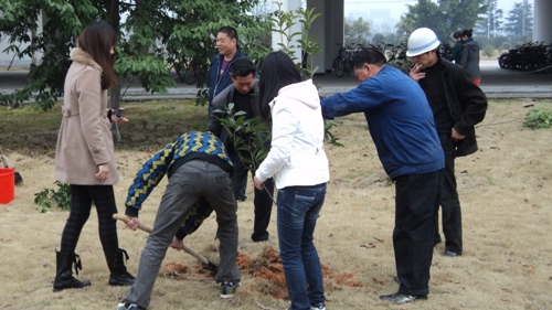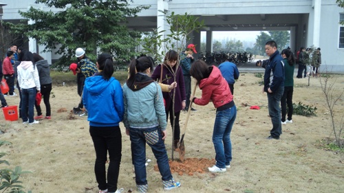 随后,同学们在学校后勤集团专业种植指导人员的讲解下学习了不同树种的栽培要领,挖坑、种树、埋土、浇水,同学们用自己的双手在北校区法政楼、人文楼、教育楼的植树点上栽下一棵棵"生命绿、环保情",虽然天空飘着丝丝细雨,但大家还是忙得不亦乐乎,一个个笑容洋溢在脸上。特殊的日子,有意义的活动;三月里,植树节,让我们共同行动!