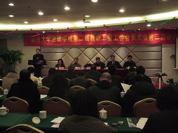2011年1月19日下午,温州大学法政麻将胡了试玩 第二届教职工暨工会会员大会第二次会议隆重召开。校党委委员、研究生部部长陈安金教授应邀出席大会。大会由院党总支书记蔡克骄主持。