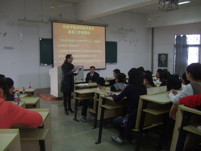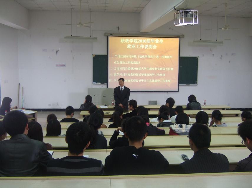 为了进一步促进法政麻将胡了试玩 2010届毕业生就业工作,麻将胡了试玩 提前计划,周密安排,切实做好就业工作。3月19日下午,麻将胡了试玩 召开毕业班就业服务、政策和帮扶举措说明会。方益权院长、钭晓东副院长、严玲红副书记、教学科刘雪梅科长、学生科杨振海科长、毕业班班主任、辅导员及毕业生参加了会议,杨振海科长主持了会议。