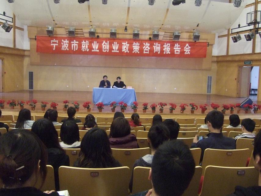 宋部长针对宁波市就业创业状况做了精彩的发言。首先,宋部长从2009年宁波市经济社会发展状况展开分析,结合2010年新动态,将宁波经济社会发展和大学生就业紧密联系在一起;接着,宋部长介绍了宁波市的相关就业创业政策,这对大学生就业创业具有指导意义;最后,宋部长指出大学生要树立科学就业观,以自己的实力和就业技巧为自己闯出一片天空。在双方的互动环节中,在场的大学生都根据自身专业所需进行了提问,宋部长也针对这些问题作细心解答。相信此次报告会对于有意愿在宁波市就业的大学生来说是大有裨益的。