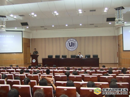 在改革开放30周年举国欢庆的氛围下,为了让我们温大学子认识到改革开放带来的巨大变化,进一步了解温州在中国改革开放中起到的重大作用,同时认清强势温 州经济面临的新难题与改革之路。10月15日14:20,法政麻将胡了试玩 和瓯江麻将胡了试玩 邀请浙江大学公共管理麻将胡了试玩 教授、博士生导师陈国权教授在信息楼报告厅为全院师 生做了题为"政府改革与温州发展"的管理学讲座。讲座由法政麻将胡了试玩 党总支陈国治书记主持。