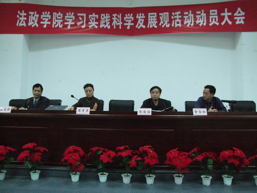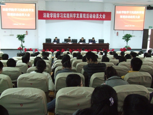 3月20日下午,法政麻将胡了试玩 在4号楼116会议室隆重召开学习实践科学发展观活动动员大会。校学习实践活动检查指导组组长周青萍、院长蔡克骄、院党总支书记陈国治、院党总支副书记金南松以及全院教师和学生党员参加会议。院长蔡克骄主持。 会上,陈国治书记首先传达了校深入学习科学发展观动员大会的讲话精神,汇报了麻将胡了试玩(中国)官方网站 前期学习实践活动的情况,并为麻将胡了试玩 更扎实有效地搞好学习实践活动进行了部署,分学习调研、分析检查和整改落实三个阶段,争取在四个方面有所突破:第一、以重新定位专业发展方向为重点,进一步研究和探讨麻将胡了试玩 的发展战略和长远规划。第二、以提高教学质量、提升学科水平为核心,深化教育教学改革,推进学科资源整合,争取学科建设上台阶。第三、建设高素质的师资队伍。第四、组织学生党员认真学习科学发展观,结合学生创业、毕业生就业工作实际,引导和鼓励学生全面发展,帮助学生用科学发展观指导自己做好职业生涯规划。陈国治书记希望全体师生党员能够进一步加强对科学发展观重要性的认识,深入理解并探索其现实意义;扎实工作,讲究实效;各党支部做好计划安排,按时按质开展好学习实践活动。 周青萍组长对麻将胡了试玩(中国)官方网站 党总支学习实践活动的实施方案予以充分肯定,并提出了几点要求和希望。首先,要统一思想,提高认识,重视学习科学发展观;其次,要以解决实际问题为重点,以我校 "推进三大转型 ,提升办学水平"的学习实践活动载体为依据,找好找准自己麻将胡了试玩 的活动载体;最后,贯彻落实学校提出的总体实施意见,把各项工作落到实处,结合麻将胡了试玩 实际,在理论与实践的结合上有所创新,挖掘亮点。 最后,蔡克骄院长做了总结发言。他强调,我们要始终牢记中央关于开展深入学习实践活动"让党员干部受教育、科学发展上水平、人民群众得实惠"的总要求,结合麻将胡了试玩(中国)官方网站 特点,将教学科研活动与学习科学发展观有机结合起来,使麻将胡了试玩(中国)官方网站 各项工作有条不紊地进行,有更好的发展。