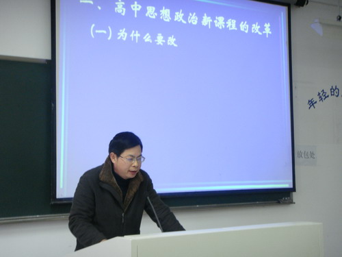 特别邀请了温州市教育教学研究院高中政治教研员、浙江省中学政治特级教师、温州大学思想政治教育专业教学指导委员会委员林月周教授为思政专业全体学生做了一场题为《普通高中思想政治新课程的课堂教学实践和改革》的讲座。讲座由思政专业建设负责人任映红教授主持。 林月周教授从事中学政治教育多年,有着丰富的教学经验,对高中政治新课程的课堂教学实践和改革研究颇多,有着自己的独到见解。他阐述了高中政治新教改的必要性,介绍了新教改后课程结构、管理、内容、价值取向、教学方式、教学目标、教学评价、教师角色的变革。林月周教授指出,高中思想政治新课强调"三个贴近"(即贴近实际、贴近现实、贴近学生),课堂教学要求"三个面向"(即面向实际、面向现实、面向学生)。教师是课堂的组织者、合作者、引导者、学生学习和成长的促进者。林教授强调新课程教学是一个探索的过程,老师要引导学生探究问题。师范生从现在开始就要树立这种教学理念,同时注意专业知识的储备,不断完善自己的知识结构以适应新课程改革后对教师素质的要求。最后,林月周教授为我们介绍了高中思想政治新课程教学的策略,其中由温州教育研究院高中教研组总结得出的"八步教学法"更是为即将去实习的06政本同学提供了宝贵的教学经验。 林月周教授的内容丰富、条理清晰、鲜活生动的讲座,接近了大学教学与中学教学的距离,同学们对当今中学思想政治新课程改革有了一个全面系统的了解,为专业学习找到了坚实的现实根基。 07政本 许双飞