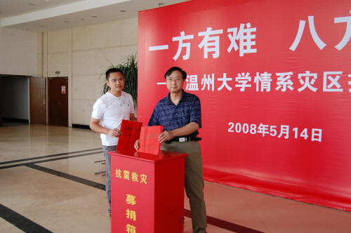 5月12日发生在汶川的大地震牵动着我们法政麻将胡了试玩 全体教职员工的心。为帮助灾区群众共渡难关、重建家园,老师们均积极参加到向灾区人民捐款的活动当中。100、200、300、500……,每一笔捐款都凝结着我们每一位教职工的牵挂和希望。陈怡老师在地震后的第二天就将2000元捐款送到了麻将胡了试玩 办公室,这也是截止目前麻将胡了试玩(中国)官方网站 最大的一笔捐款。 在捐款的同时,院领导、院工会积极询问、及时了解麻将胡了试玩(中国)官方网站 老家在西北地区(尤其是四川地区)的教职工家中的受灾情况。 截止目前,麻将胡了试玩(中国)官方网站 已累计捐款16400元,陈国治书记代表麻将胡了试玩(中国)官方网站 教职工将这第一笔捐款已送交到了校工会,捐款还在继续。我们相信,这些饱含着爱心的捐款,将给灾难中的同胞带去废墟中重建家园的勇气和力量! 让我们携手同心、众志成城,与灾区的同胞同渡难关,早日赢得抗震救灾的胜利!