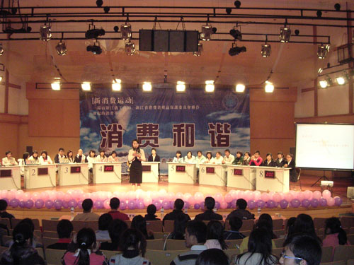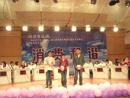 为了增强在校大学生的消费维权意识,推广消费法制观念,促进和谐消费,3月15日晚,由瓯海区消费者协会与温州大学联合举办的"3.15"维权知识竞赛决赛在温州大学茶山北校区音乐厅拉开序幕。列席的嘉宾评委有温州市消费委副秘书长陈朝霞,瓯海工商局局长姜剑,瓯海消费委秘书长林峰以及法政麻将胡了试玩 项一丛、林千多和刘芳雄老师。 本次竞赛本着公平、公开、公正的原则,采取现场计分的方式进行。预赛中胜出的八支队伍在此展开了激烈角逐,作为承办方的法政麻将胡了试玩 代表队更是一发千里,势如破竹--在二轮的抢答阶段便一举确立了自己的领先地位。其他麻将胡了试玩 代表队同样穷追不舍,毫不示弱。场上表现精彩,而场下啦啦队、亲友团的表现同样是振奋人心。经过六轮激烈的角逐,法政麻将胡了试玩 代表队一举夺冠,而人文麻将胡了试玩 和商麻将胡了试玩 也取得不俗的成绩,荣获二等奖;城市麻将胡了试玩 、瓯江麻将胡了试玩 、教育麻将胡了试玩 、外国语麻将胡了试玩 和数信麻将胡了试玩 分列四至八名。 本次活动作为3.15消费者权益维护日的有力宣传平台,不仅提高了在校大学生的和谐消费意识,也增强了广大学生的消费维权观念和坚持可持续消费的信心。 法政麻将胡了试玩 2007.3.15