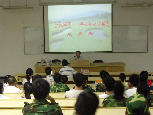 为了做好今年暑期社会实践的总结工作,让更多的学生了解暑期社会实践的目的、意义,总结交流麻将胡了试玩 各支队伍取得的成绩,找出存在的不足,法政麻将胡了试玩 开展了2006年暑期社会实践的一系列总结交流活动。 这次活动主要由两部分组成:一是举办了"暑期社会实践成果展。"各支队伍运用图片录象等形式充分展示了同学们不顾高温酷暑,深入社会生活最前沿调查研究、服务社会的英姿和丰硕的成果;二是召开暑期社会实践经验交流会。9月22日晚,麻将胡了试玩 召开了暑期社会实践经验交流会,全院26支队伍的代表和06级新生代表参加了会议。 院党总支书记陈国治教授、副院长王柏民教授、学生科科长杨振海老师参会议,辅导员郝舒老师主持会议。陈书记首先代表麻将胡了试玩 领导班子对参加今年实践的26位老师、230多位同学表示热烈的祝贺。他对实践队员们表现出的高度热情,以及克服各种困难的精神表示了肯定,并表扬了他们对社会的责任感、开展实践活动的积极性。最后陈书记还谈了自己的几点感受:大学生参加社会实践的必要性;在实践中要做有心人,认真思考社会现象中的各种问题,结合理论进行深入的思考与探讨;实践应该与自己的专业紧密结合,争取为专业的学习增加求知的动力。接着此次实践中表现突出的总工会实践队、04社本实践队、新失业群体调查队、关注民工实践队、志愿者西部行服务队等一一上台做了实践总结、汇报,并谈了各自的感受。 最后,王院长就本次活动做了点评,并就自己的感受向在场的同学谈了几点要求:首先对实践要有思想上的充分认识,把它摆到正确的位置上,社会实践并不只是拿学分,更重要的是锻炼能力;其次,为了方便实践,要做好师生联络,师生结合;第三,建议已经实践过的同学,今后继续参加暑期社会实践,高年级带动低年级,并做好每一次实践的总结。 暑期社会实践让同学们受益匪浅,大家深切感到,这次活动不仅使我们学到了书本以外的许多知识,而且进一步认识了社会,学会了怎样用专业服务社会。愿法政学子的社会实践之路越走越好。 通讯员:张丹东 2006-9-23