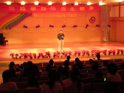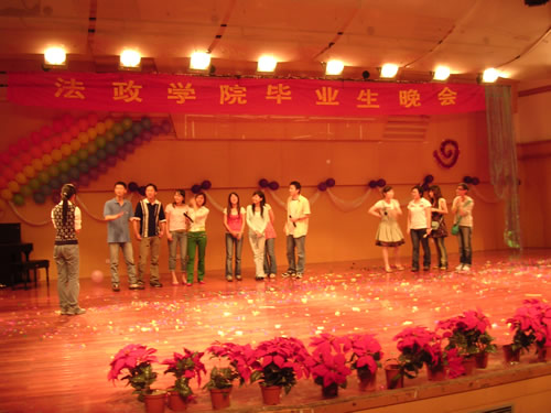 6月4日18时30分,法政麻将胡了试玩 在北校区音乐厅为毕业生举办了隆重的欢送晚会。热情洋溢的七人组合街舞拉开了晚会的序幕。随后,麻将胡了试玩(中国)官方网站 党总支书记陈国治教授为本次晚会致辞。陈书记在肯定02届毕业生成绩的同时,代表全院师生给他们送上了美好的祝福,祝愿他们在今后事业有成、前程似锦。