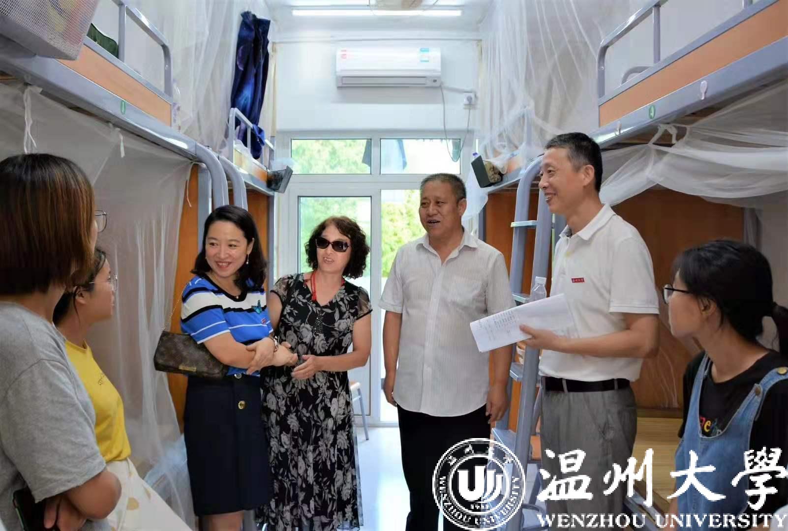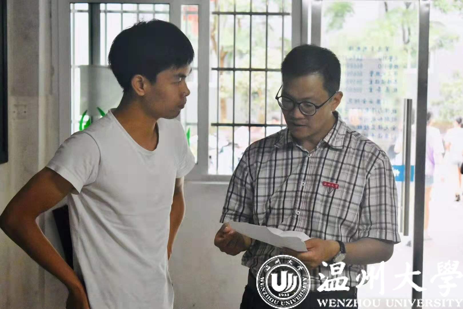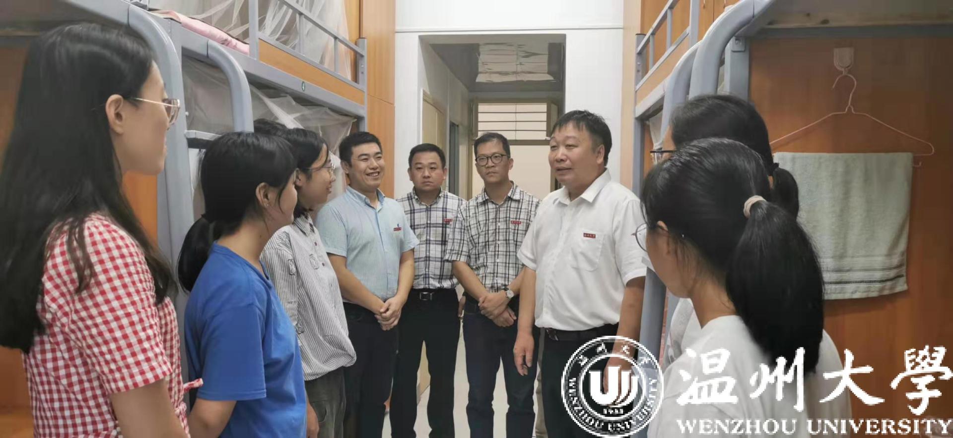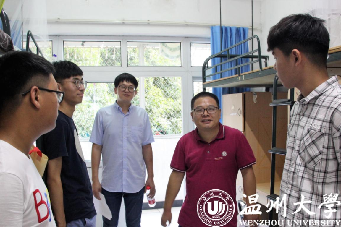 为及时了解到校新生的精神面貌,加强与新生和家长的沟通交流,9月4日下午,温州大学校长、党委副书记赵敏、麻将胡了试玩 院长王宗正、党委书记林钦、党委副书记杨振海、副院长缪心毫、副院长周湖勇、学工办主任林丽丽、辅导员谢亭立、白昌科以及新生班主任、班助和团委学生会成员,走访了2019级新生寝室,了解新生到校情况,向新生们致以热烈的欢迎和亲切的问候。