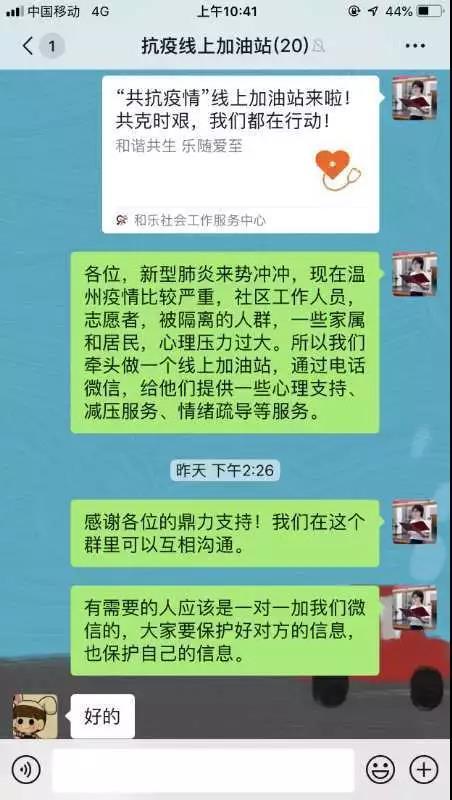 一直牵动着我的心的还有冲在抗疫一线的医护人员、社区工作者、被隔离的人群及家属,还有支持防疫控疫而不能出门的人们。非常时期,除了打好这场身体健康保卫战外,还要打好心理抗压战,帮助人们尽最大可能保持冷静与理智,千万不要“病毒未来,心态先崩”。因此,我们招募社会工作者、心理咨询师、教师等组建“抗击新型肺炎疫情”线上加油站,为一线医护人员、社区工作者、被隔离者及其他有需要的居民群众等免费提供心理疏导、减压、社会支持等服务。针对需求多样化,我们通过精准分类,附上具体服务范围和人员简介,可快速帮助有需要的人们“对号入座”。上线6天,已服务一百多例,涵盖心理咨询、情绪疏导、减压游戏、应急物资对接、课业辅导、外文翻译等。不论是奋战在一线的医护人员,还是多日足不出户的普通居民;不管是隔离人群、疑似患者,还是确诊患者、家属,或多或少都存在恐慌、焦虑等心理问题,尤其是一线防疫人员的实际压力,长期高强度工作带来的疲惫,春节这样一个团圆的日子而不能回家,回家了又怕传染给家人,我们通过线上加油站来给大家提供“云”援助,增强大家的心理免疫力,提升大家应对疫情的信心。还有大量的求助是购买应急物资,一出门就要口罩,却怎么也买不到口罩,淘宝上稍微正规点的都下架了,不太正规的不知道真假,代购也主动要毁约了,我们也会发动社会力量、海外侨胞的力量协助他们对接物资。也有碰到求职的情况,有的人会在年底的时候拿完年终奖就把工作辞掉,等待第二年开春就去应聘,没想到,疫情一耽误,企业不知道何时能复工,更别提招工了,没有工作就要应对经济压力。还有各种辟谣了,很多人还是受困于各种谣言,什么洒消毒粉液导制全村去摘菜的,这里有确诊消息,那里有确诊消息等各种容易引起恐慌的谣言,我们会引导他们通过准确有效的信息渠道进行查询。