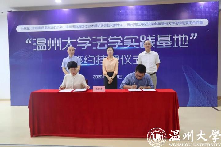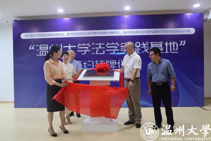 9月18日上午,瓯海区矛盾纠纷调处化解中心与麻将胡了试玩(中国)官方网站 合作签约暨“温州大学法学专业实践教学基地”揭牌仪式举行。瓯海区区委副书记钱素文参加仪式并致辞,麻将胡了试玩(中国)官方网站 院长王宗正、副院长周湖勇等参加仪式。