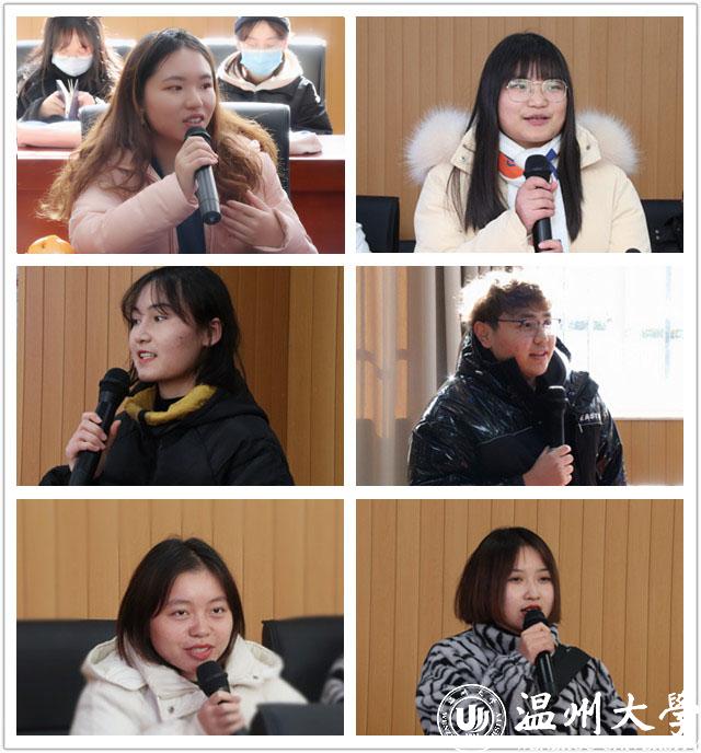 在师生交流环节中,部分学生就自己在温大的学习和生活进行了分享与交流。19级黄海珍同学表示,来到温大麻将胡了试玩 的这段时光非常具有幸福感,在麻将胡了试玩 老师的关心与引导下,慢慢适应了大学的学习生活;来自新疆的阿丽米热同学和特力叶克同学则和大家分享了自己大学生活由不适应到适应的心路历程,为20级的新生们更好地适应和融入大学生活提供了有力的帮助;20级傅薇同学以新生的视角和大家分享了进入温大一学期以来自己的所见所闻,在学长学姐的帮助下,她很快适应了大学的生活并且结交到了许多新朋友。“能够成长为一名优秀的学生干部离不开麻将胡了试玩 老师对我的支持与培养,在大学的两年时间里,麻将胡了试玩 的老师为我提供许多参与学科竞赛、职业发展规划、参政议政等学习的机会,让我更加坚定了自己要成为一名少数民族律师的梦想”,18级鲁海佳同学这样说道。
