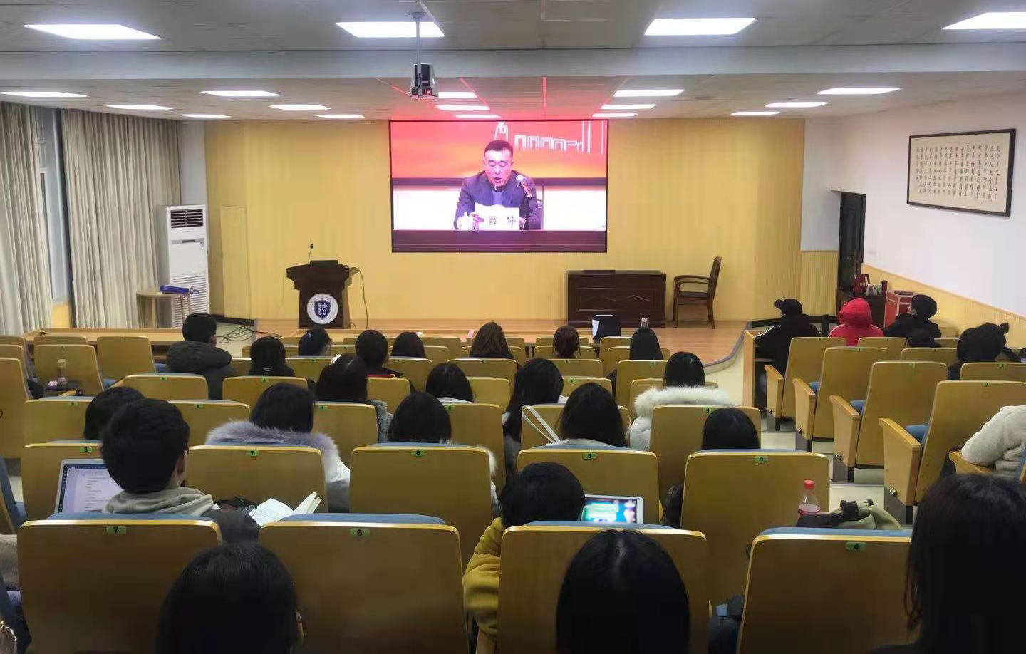 2021年1月7日晚上,麻将胡了试玩 20级研究生在麻将胡了试玩 301室集中观看了温州大学学习《习近平总书记教育重要论述讲义》开课仪式及第一课内容。 开课仪式上,校党委委员、副校长薛伟教授做开班讲话,校党委委员、宣传部长潘玉驹主讲第一课“新时代建设教育强国的根本遵循”。