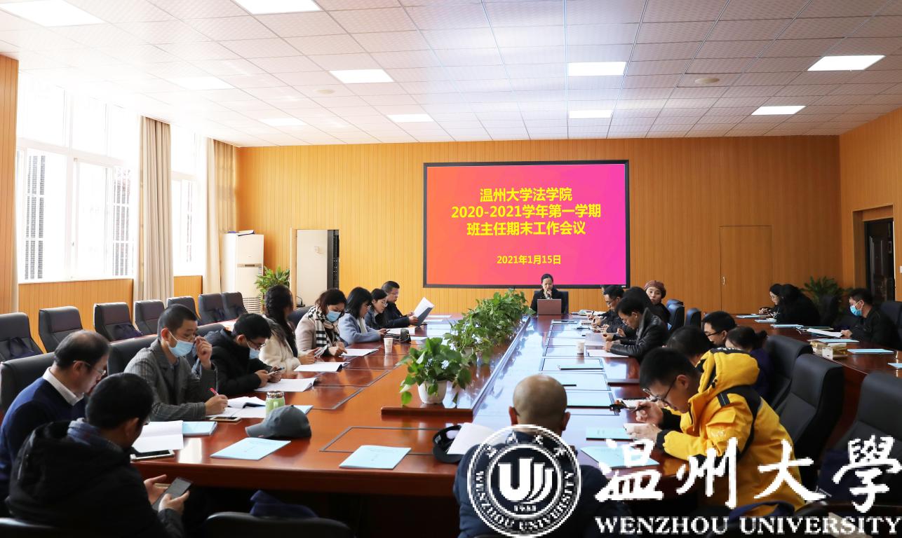 2021年1月15日中午,麻将胡了试玩 2020-2021学年第一学期班主任工作总结会议在法学楼103会议室召开,麻将胡了试玩 党委副书记杨振海、学工办主任林丽丽、辅导员和麻将胡了试玩 全体班主任老师参加了会议。