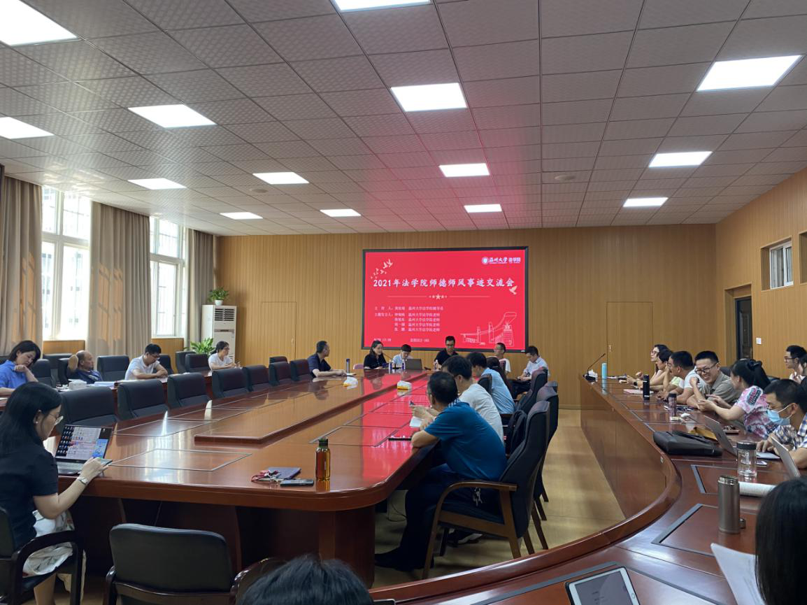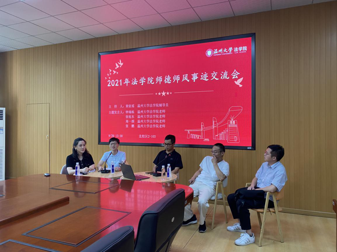 9月29日下午,麻将胡了试玩 在北校区2号楼103会议室召开2021年麻将胡了试玩 师德师风事迹交流会。会议邀请钟瑞栋、徐旭东、周一颜、张鹏四位老师做师德师风事迹分享,辅导员黄依瑶主持会议,麻将胡了试玩 全体教工参加。