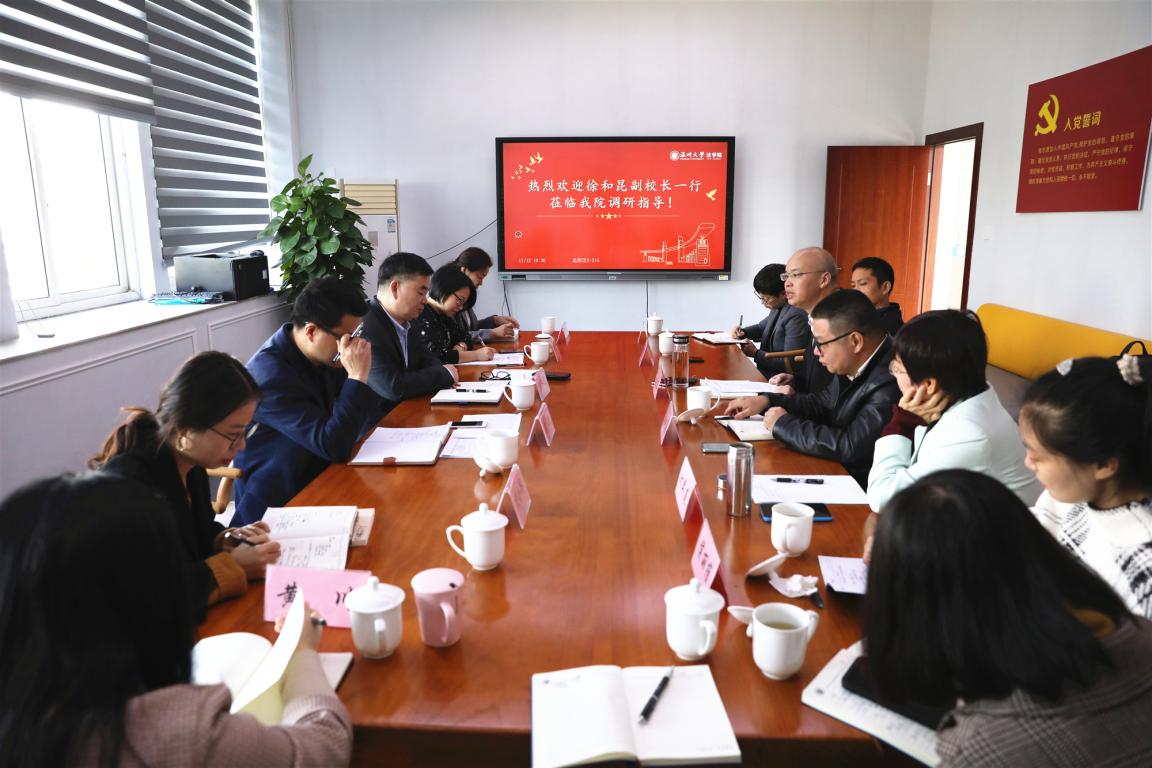 11月12日上午,徐和昆副校长莅临麻将胡了试玩 院调研指导科研工作,人文社科处处长胡瑜、项目管理科科长林玉双、成果管理科副科长项小琴陪同调研,麻将胡了试玩 院长王宗正、副院长周湖勇、研究机构负责人代表及科研骨干代表出席会议。