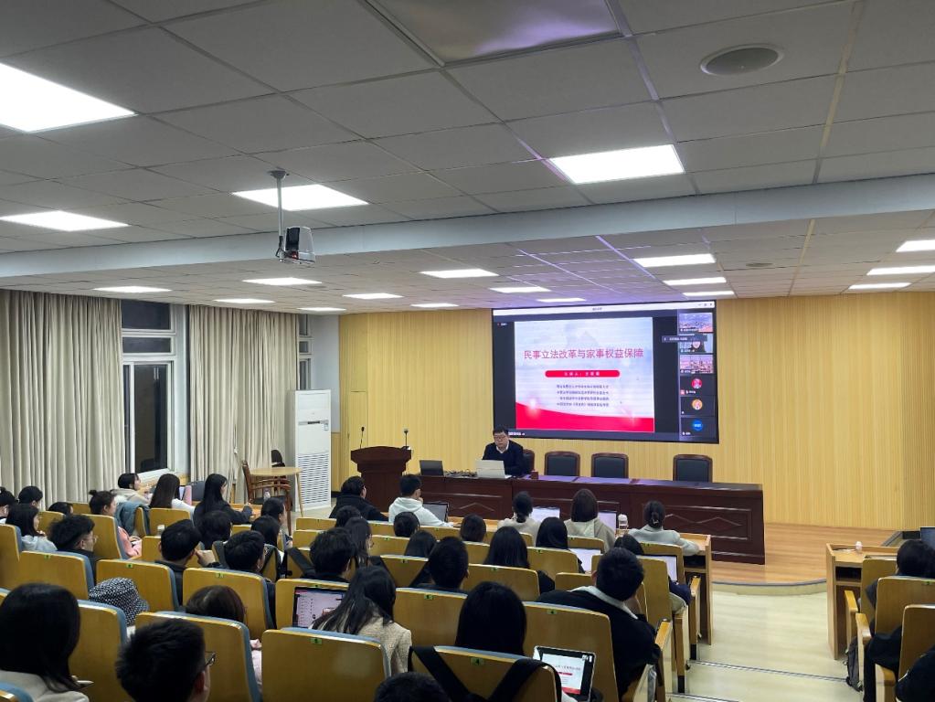 王歌雅教授从社会性别视角阐释了当代婚姻观、生育观的变化,及其对民事立法改革的重要影响。作为研究中国家事立法与改革的专家,王教授以数据、案例为基础,深入浅出地向会场师生展示了家事法领域的新观念、新问题、新思路、新变化。讲座中王教授娓娓道来的教学方式让人如沐春风,也让全体参会师生感受到我国一流学者、一流师者的风范与气质。在现场的热烈掌声与线上的持续点赞中,本场讲座取得了圆满的成功。