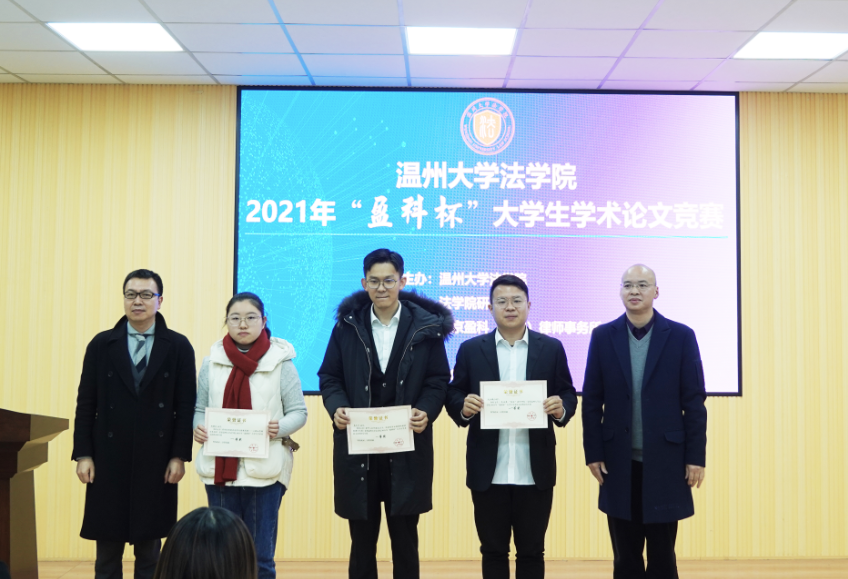 为营造浓厚的学术研究氛围,提升学生的学术研究能力,加强研究生和本科生之间的学生交流互助,麻将胡了试玩(中国)官方网站 于12月29日举办2021年“盈科杯”大学生学术论文竞赛。本次竞赛以“共同富裕与法治发展”为主题,学生围绕创新创业、公共服务、税收消费、农民农村、社会治理、经济社会发展等领域的法律制度、法律规则、法制建设相关问题展开研究。竞赛由麻将胡了试玩 研究生会承办、北京盈科(温州)律师事务所协办。麻将胡了试玩 院长王宗正教授、盈科(温州)律师事务所党支部书记陈德元律师、盈科(温州)律师事务所青工委主任娄雪律师,以及麻将胡了试玩 教师谢丽珍、李娟、黄点点、侯丽维出席活动并担任评委。