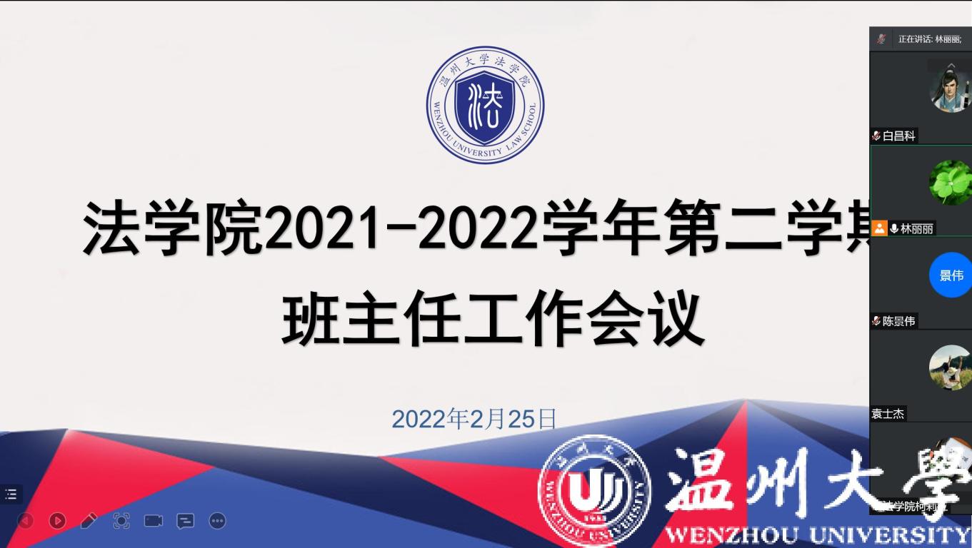 2月25日中午,麻将胡了试玩(中国)官方网站 在腾讯会议室召开新学期全体班主任工作会议。麻将胡了试玩 党委副书记杨振海、学工办主任林丽丽及全体辅导员和全体班主任参加本次会议。会议由党委副书记杨振海主持。