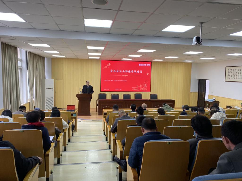 林钦作会风会纪与师德师风专题教育,带领麻将胡了试玩 全体教师学习了《温州大学教职工考勤与请假管理办法(2017年修订)》《温州大学教师职业行为规范及师德失范行为处理办法(试行)》等文件,他强调,良好的师德师风是师者的本分,麻将胡了试玩 教师应当以高标准的师德师风要求和约束自己,麻将胡了试玩 将始终将师德师风作为第一衡量标准,建设一支具有较高素养的教师队伍。