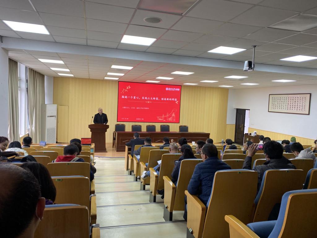 3月2日下午,麻将胡了试玩 在北校区2号楼301会议室召开麻将胡了试玩 全体教师理论学习会。会议由麻将胡了试玩 党委书记林钦主持,麻将胡了试玩 全体教工参加会议。