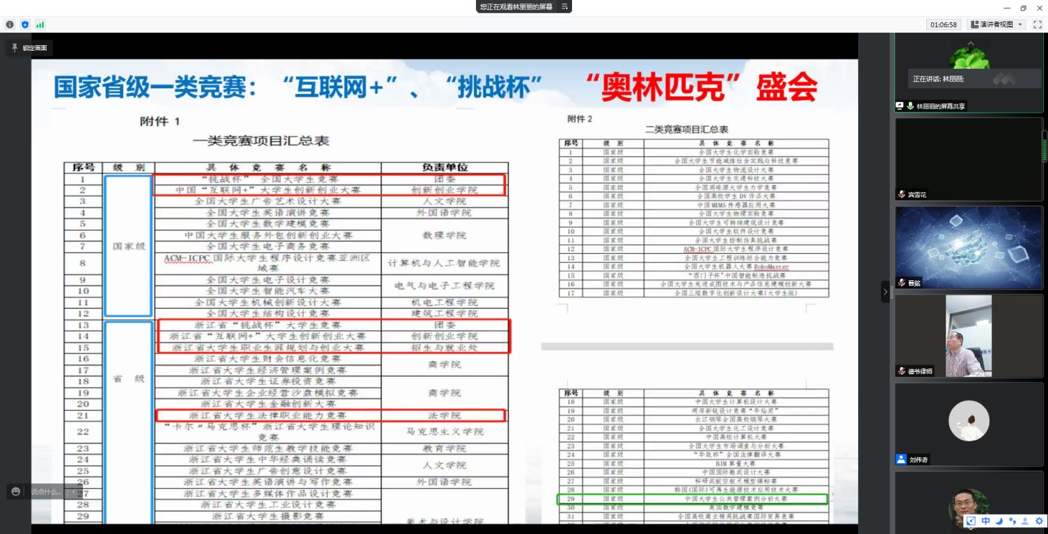 学工办主任林丽丽作“挑战杯”和“互联网+”竞赛政策传达。鼓励各位老师积极帮助学生做好各项竞赛的准备工作,推进2022年麻将胡了试玩 重点工作建设。