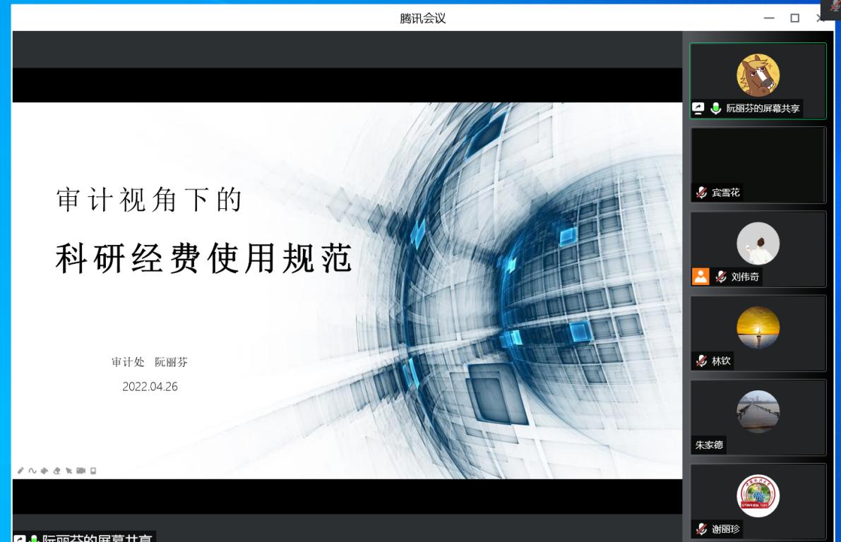 校审计处处长阮丽芬以《审计视角下的科研经费使用规范》为题为麻将胡了试玩 全体教职工作科研经费的规范使用宣讲。她从科研经费使用的政策依据以及科研经费使用的合规性、合理性、真实性、相关性等方面提醒各位老师应当科学规范地使用科研经费。