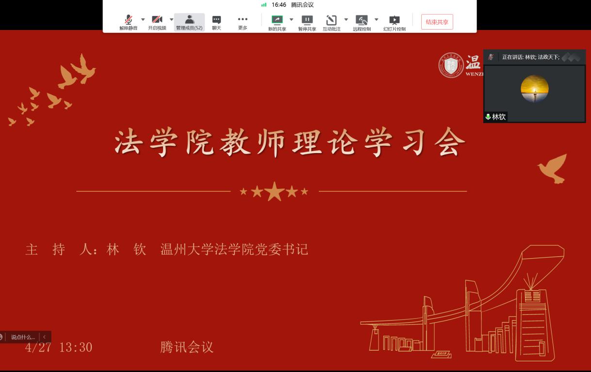 4月27日下午,麻将胡了试玩 通过腾讯会议召开麻将胡了试玩 全体教师理论学习会。会议由麻将胡了试玩 党委书记林钦主持,麻将胡了试玩 全体教职工参加会议。