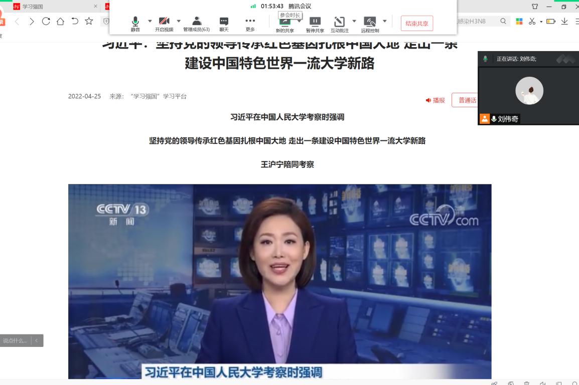 院党委书记林钦带领麻将胡了试玩 教职工学习了习近平总书记在考察中国人民大学时的重要讲话。林钦指出,我们要坚持党的领导,坚持马克思主义指导地位,坚持为党和人民事业服务,落实立德树人根本任务,传承红色基因。广大青年教师要争做堪当民族复兴重任的时代新人,在实现中华民族伟大复兴的时代洪流中砥砺奋发。