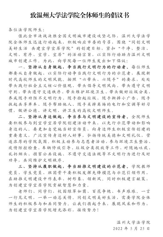 5月25日下午,值此全市决战决胜全国文明城市建设攻坚之际,麻将胡了试玩(中国)官方网站 全体师生迅速行动起来,积极响应市委的号召,围绕“同创文明美好生活 共建宜学宜居麻将胡了试玩 ”的创建目标,紧扣“干净、整洁、文明、有序、宜学、宜居”的活动宗旨,重点突出乱放垃圾、乱拉线管、乱贴乱画、乱停车辆等“五乱”整治,深入开展环境整治师生大联动,以实际行动助力温州文明城市创建工作。