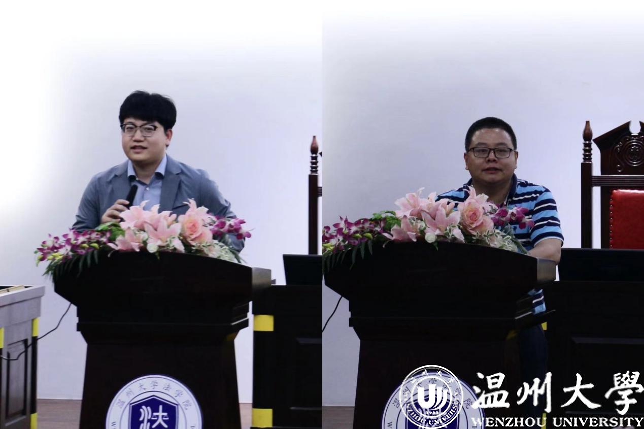 第一个阶段,举行麻将胡了试玩(中国)官方网站 和上海浩信(温州)律师事务所法学实践基地的签约仪式。上海浩信(温州)律师事务所主任章超凡律师从麻将胡了试玩 副院长周湖勇老师手中接过温州大学法学实践基地的授牌,随后,章主任、周副院长分别代表律所和麻将胡了试玩 就双方的实践合作发言。