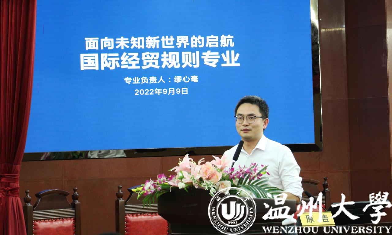 法学与国际经贸规则会场由法学专业负责人李勇军老师主持,副院长周湖勇老师对麻将胡了试玩 概况、温州法学专家及法律案例、师资和学生概况等几个方面进行介绍;国际经贸规则专业负责人缪心毫老师介绍了国际经贸规则专业的课程设计、学科融合背景以及人才培养目标等内容。