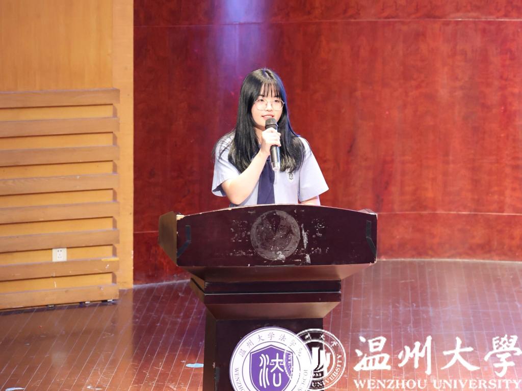 在老生代表发言环节,庄梦雪同学展示了优秀学长姐的风采,勉励新生锐意进取,大胆探索,不断提高自己,为麻将胡了试玩 发展贡献自己的力量。
