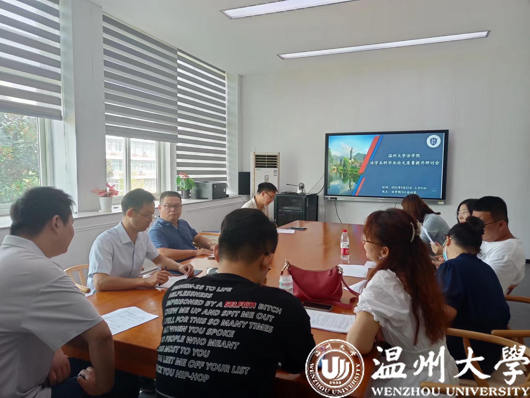2022年9月23日上午,麻将胡了试玩 法学系和国际法系召开法学本科毕业论文质量提升研讨会,副院长周湖勇,相关专业负责人、系主任、教务科科长师和部分教师代表参加了会议。会议由李勇军老师主持。