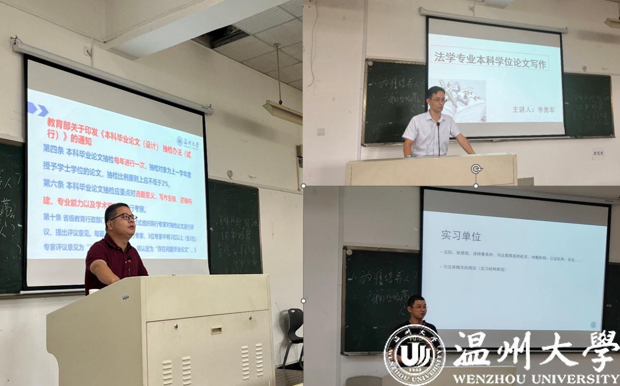 9月28日,麻将胡了试玩(中国)官方网站 在麻将胡了试玩 203教室召开2023届法学专业本科毕业生毕业论文暨专业实习动员大会。麻将胡了试玩 副院长周湖勇老师、法学专业负责人李勇军老师、法学实验实训中心副主任柯宇航老师作主题发言,全体2019级法学专业本科生参加大会。