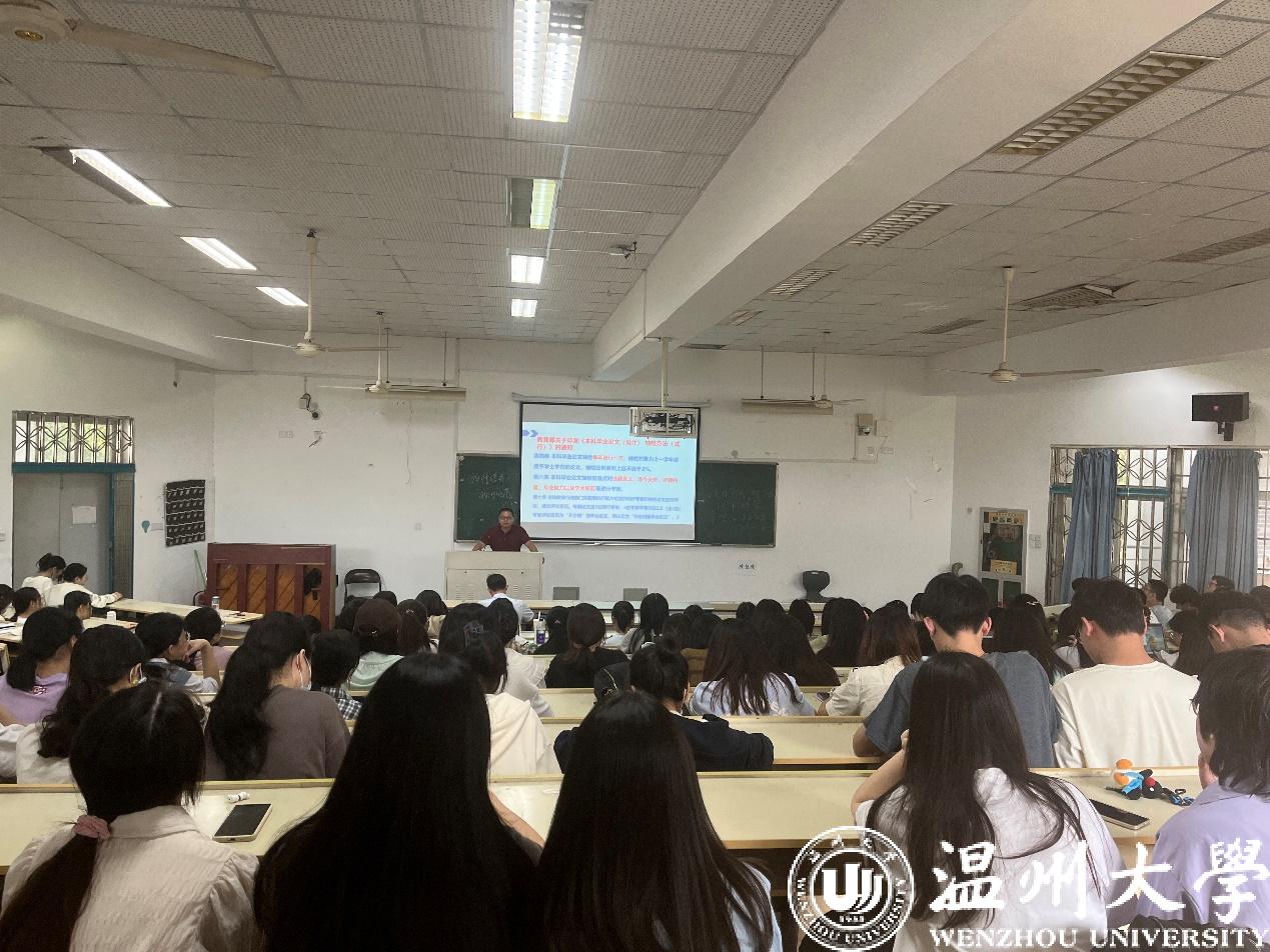 周湖勇老师根据教育部关于印发《本科毕业论文(设计)抽检办法(试行)》的通知,以及自身组织参与实践教学的丰富经验,向全体师生强调了毕业论文、专业实习的重要意义;呼吁学生珍惜毕业论文的写作锻炼机会,通过毕业论文充分展示自己搜集整理信息资料的能力,研究方案的设计、策划能力,书面表达创新性观点的能力;并就毕业论文和专业实习中的注意事项进行了温馨提示。李勇军老师向全体学生详细说明了毕业论文的写作要求,包括论文格式要求、选题与题目凝练、框架结构的安排、写作与论证、研究方法的使用、资料的引用、修改与完善等诸多方面。柯宇航老师介绍了专业实习的具体安排,特别提醒了全体学生注意人身和财产安全、遵守实习单位的规章制度、注意职场文明礼仪以及遵守防疫政策。