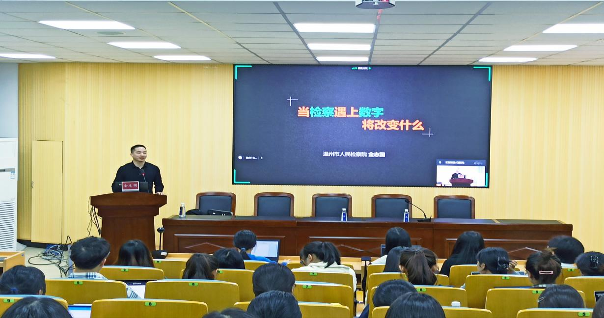 2022年11月9日晚6点半,温州市人民检察院金志国检察官应邀作客“罗山法律实务论坛”,为麻将胡了试玩 师生带来题为《当检察遇上数字》的讲座。本次讲座由麻将胡了试玩(中国)官方网站 副院长周一颜主持,采取了线上线下相结合的方式,在北校区麻将胡了试玩 301教室和腾讯会议直播间,谢丽珍老师、白兴科老师,部分21级研究生、22级研究生及全体20级法学本科生共有三百余人参加了此次讲座。