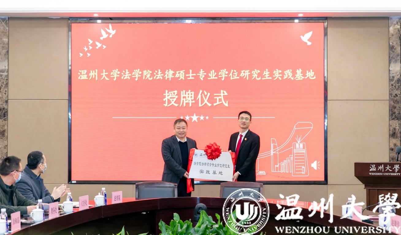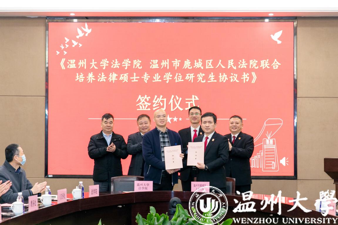 签约仪式上,温州大学校长赵敏向鹿城法院授牌“麻将胡了试玩(中国)官方网站 法律硕士专业学位研究生实践基地”。麻将胡了试玩(中国)官方网站 院长王宗正与鹿城法院副院长胡俊代表双方签订《联合培养法律硕士专业学位研究生协议书》。