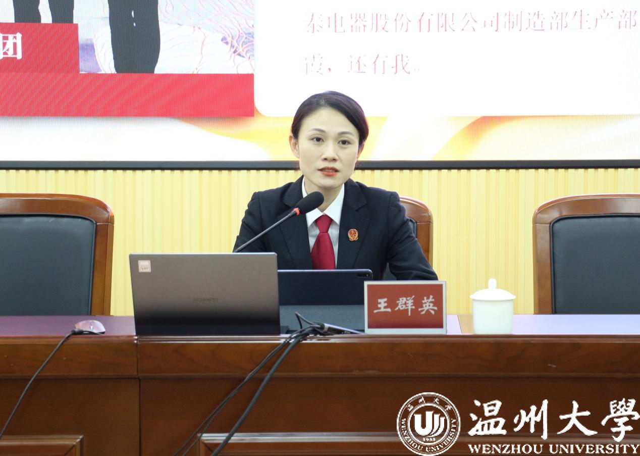 为深入学习党的二十大报告精神,12月12日下午,麻将胡了试玩(中国)官方网站 邀请党的二十大代表、瓯海区人民法院刑事审判庭副庭长王群英作党的二十大精神宣讲报告。宣讲会由麻将胡了试玩 院长王宗正主持,麻将胡了试玩 全体师生通过线上线下相结合的方式参加会议。