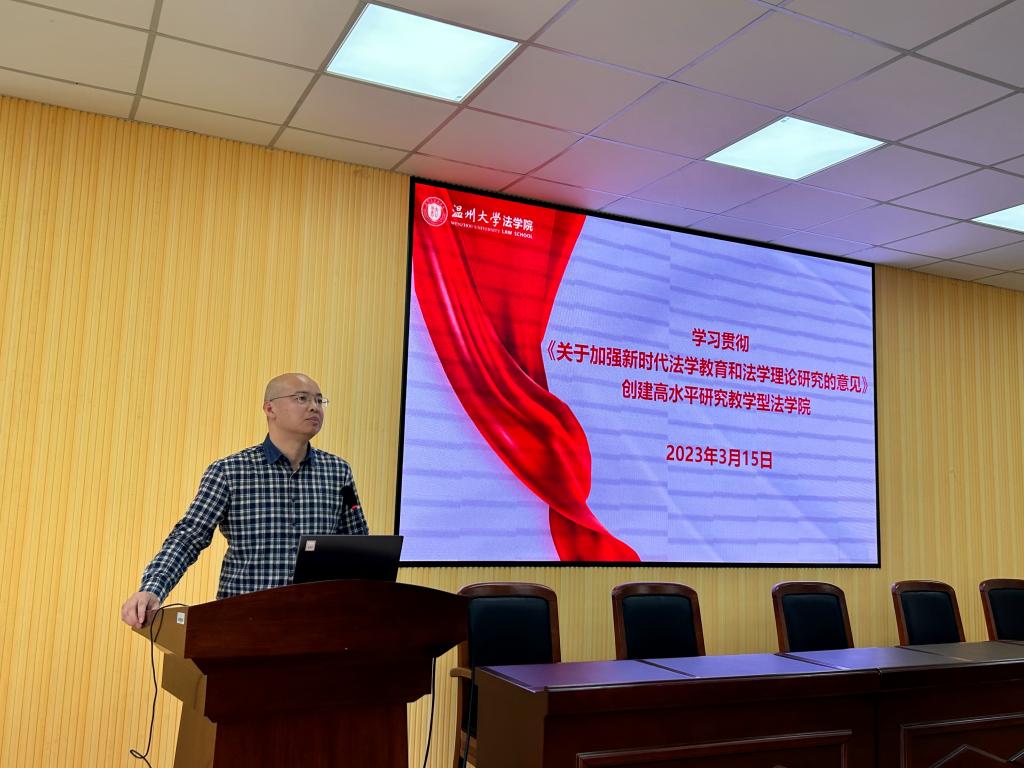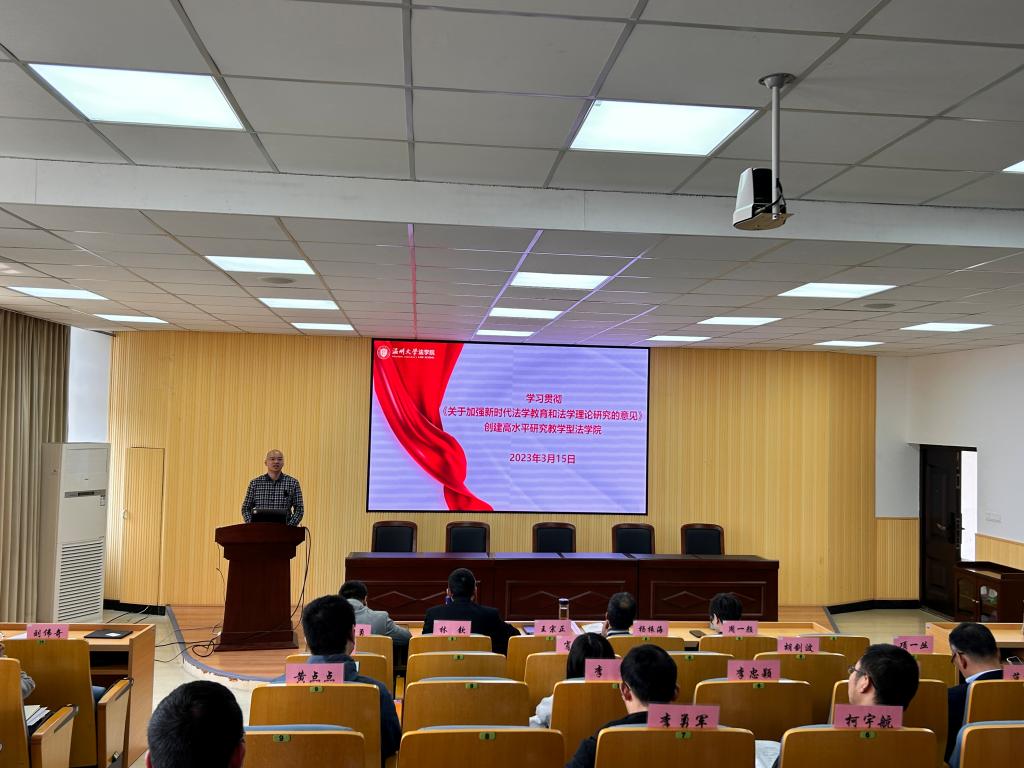 近日,中共中央办公厅、国务院办公厅印发《关于加强新时代法学教育和法学理论研究的意见》(以下简称《意见》)。3月15日下午,麻将胡了试玩(中国)官方网站 召开麻将胡了试玩 教师理论学习会,由麻将胡了试玩 院长王宗正领学《意见》精神,并就麻将胡了试玩 如何贯彻落实《意见》精神提出建议。本次会议由麻将胡了试玩 党委书记林钦主持,麻将胡了试玩 全体教职工参加会议。
