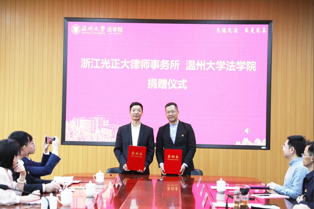 随后,举行签约仪式和捐赠仪式。浙江光正大律师事务所副主任陈兴良、麻将胡了试玩(中国)官方网站 院长王宗正分别代表浙江光正大律师事务所、麻将胡了试玩(中国)官方网站 签订校律战略合作协议。