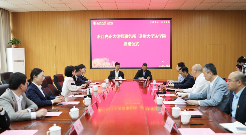 2023年5月12日上午,麻将胡了试玩(中国)官方网站 与浙江光正大律师事务所合作签约和捐赠仪式隆重举行,双方达成战略合作,光正大律师事务所向麻将胡了试玩 捐资100万元支持法律人才培养。浙江光正大律师事务所副主任陈兴良、事务所副主任兼党支部书记潘晓珍、事务所副主任兼党支部副书记杨晓竹、事务所副主任汪丽敏、事务所合伙人程杰、事务所合伙人兼团支部书记吴成情,麻将胡了试玩(中国)官方网站 院长王宗正、院党委书记林钦、院党委副书记兼纪委书记杨振海及麻将胡了试玩 各部门老师等出席签约仪式和捐赠仪式。会议由林钦书记主持。
