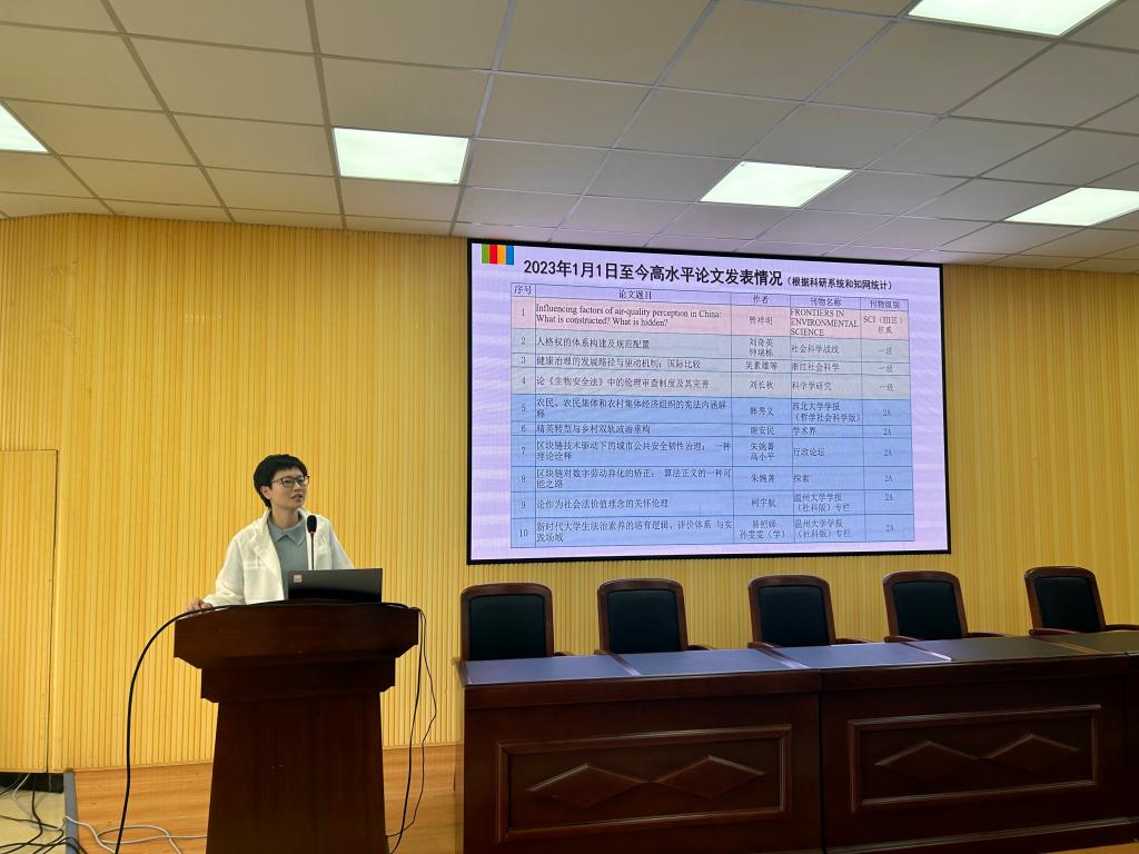 周一颜副院长作为优秀教师代表谈科研工作体会。她指出,麻将胡了试玩 在高水平论文发表和著作出版方面都有新的突破,整体科研氛围有明显提升。在新形势下,麻将胡了试玩 不仅要做创新研究、开放研究和特色研究,也要主动走出去,集中力量办大事。对于每个老师个人来说,也需要做一定的自我调整,找到新的更适合自己的发展的赛道。同时要布局新兴交叉学科来对接重大的发展战略需求,进一步以新时代全面依法治国实践为研究对象,通过理论研究更好的回答和解释法治实践中遇到的实际问题。