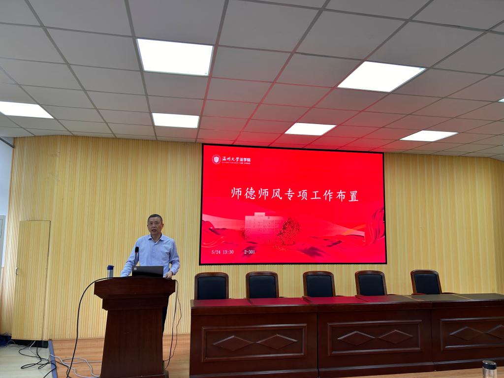 林钦书记布置师德师风专项工作。根据浙江省教育厅最新通知要求和学校师德师风专项工作安排,要求麻将胡了试玩 全体教师要开展一轮自学,开展一次自查,开展一次剖析,撰写一份工作小结,签订一份承诺书,同时要求各系室开展一次师德师风谈心谈话会,各支部开展一次师德师风专题党课培训,多形式开展教师师德主题教育。